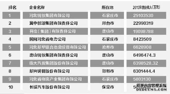 原標(biāo)題:長(zhǎng)城汽車最掙錢 河北物流首入十強(qiáng) 近日,由省工經(jīng)聯(lián)(省經(jīng)團(tuán)聯(lián))主辦,省 企業(yè) 家協(xié)會(huì)、省 企業(yè) 聯(lián)合會(huì)、省統(tǒng)計(jì)學(xué)會(huì)協(xié)辦的河北百?gòu)?qiáng) 企業(yè) 榜單正式出爐,河北鋼鐵集團(tuán)以年?duì)I