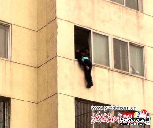 燕趙都市報冀東版記者 劉國成 文/圖 11月26日下午,位于秦市市中心的秦皇小區(qū)內(nèi)發(fā)生驚心動魄一幕,一名年輕女子因遭遇感情問題,想不開坐在租住的4層樓陽臺窗沿處欲跳樓。樓上樓下眾人苦口婆心勸說一個多小時無果之際,女子突然身體一歪往下掉,在場民警手疾眼快,將女子拉回室內(nèi)。 當天下午1點10分,記者來到秦皇小區(qū)64號樓西側(cè)時,趕來救援的消防隊員、派出所民警已經(jīng)在樓下拉起警戒線。眾多圍觀市民都在仰望坐在4層陽臺窗口處的一名女子。據(jù)64號樓居民介紹,女子所在的位置為64號樓西房山一大面積戶型住宅。該住宅為出租屋,且為多戶合租房,“房子三室兩廳兩衛(wèi),面積大,就是吵鬧得很,住著幾撥年輕人。” 記者注意到,樓上女子穿著深色羽絨服,腳蹬皮靴,身體向右斜坐在窗沿上,左半邊身子都懸在半空中,雙手緊緊抓著窗框,險象環(huán)生。寒風中,這位面容清秀的女子不時地啜泣著,任憑樓下的民警不停地勸慰。由于女子下方地面位置為一處斜坡步道拐角,無法架設救生氣墊,4位消防隊員只好拽著一張毛毯的四角,以備不測。 “她坐在那一個多小時了,這么冷的天,就怕她抓不住窗沿掉下來。”到場的建設大街派出所民警告訴記者,女子來自周邊縣區(qū),在市區(qū)暫住,救援人員正在緊急聯(lián)系其家人到場。到場的民警兵分兩路,一路民警在樓上同女子的朋友一起勸說,另一路民警在樓下同消防隊員隨時準備應對突發(fā)狀況。 1點36分,不知是因為久坐體力不支還是由于徹底絕望,坐在窗沿的女子突然身體向左一歪開始往下掉。就在女子整個身體掉出窗外,僅剩雙手仍在窗口之際,一名在樓上的民警箭步?jīng)_到窗口處,探出上身,雙手用盡全力將女子雙臂死死抓住!突如其來的變故讓樓下圍觀人群發(fā)出驚呼:“千萬別松手!抓??!”轉(zhuǎn)眼間,另一位沖到窗口的民警探右手抓住女子懸空的大腿,二人合力將女子拉回室內(nèi)。樓下眾人這才長出了一口氣! 隨后,剛剛獲救的女子已經(jīng)渾身癱軟,被民警抬上警車送至派出所。經(jīng)民警了解,輕生女子因遭遇感情問題,一時想不開才出此下策。民警表示,警方會對女子進行勸說教育,后將由其親屬接回。 (責任編輯:admin) |