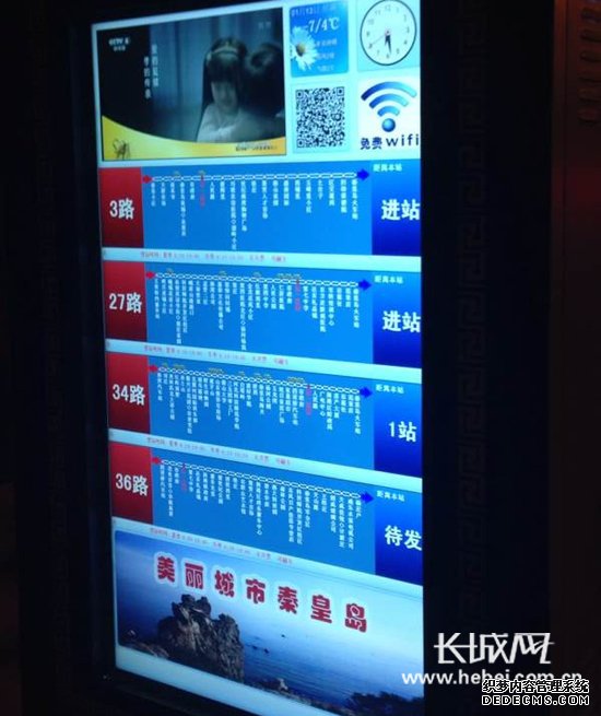 電子智能站牌亮相港城。張瀟月 攝 長(zhǎng)城網(wǎng)秦皇島1月15日電(張瀟月 記者 李興雙)近日,秦皇島市 公交 站牌給市民們帶來了一份小驚喜,全新的電子智能站牌,吸引了眾多市民的目光。