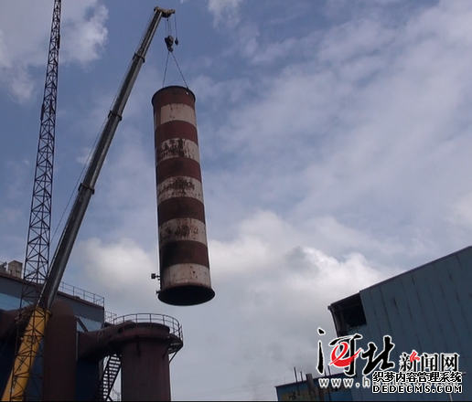6月13日,承鋼雙福礦業(yè)煙囪拆除現(xiàn)場。蔡掛意攝 河北日報、河北新聞網(wǎng)記者段麗茜 5月28日上午9時,隨著一聲令下,秦皇島市三根服役多年的煙囪同時倒地,徹底結束了它們的使命。這