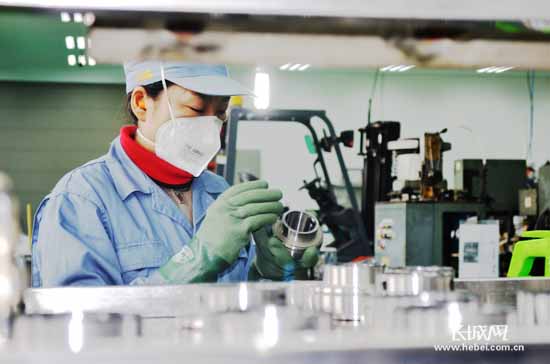 公司員工在檢測產(chǎn)品外觀。 長城網(wǎng)秦皇島11月6日訊(祖迪 記者 李興雙 通訊員 王繼軍)今日記者獲悉,日前,秦皇島恩彼碧軸承有限公司新工廠投產(chǎn)運(yùn)營,標(biāo)志著世界最大的帶座軸承 生