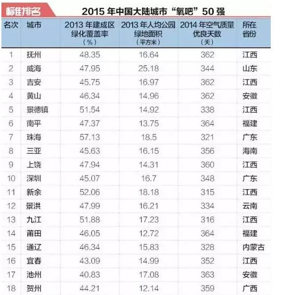 近日,媒體盤點(diǎn)2015年中國大陸 城市 氧吧50強(qiáng), 秦皇島 位列29,是全省唯一入選前50的城市。 此次排名數(shù)據(jù)由標(biāo)準(zhǔn)排名研究院搜集提供。 其中,森林覆蓋率、綠化覆蓋率、綠地率等指標(biāo)
