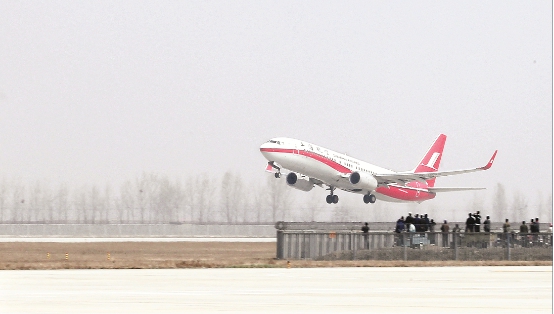3月31日,上海航空FM9142次航班順利起飛,標(biāo)志著秦皇島北戴河機場轉(zhuǎn)場通航成功。記者 劉曉攝