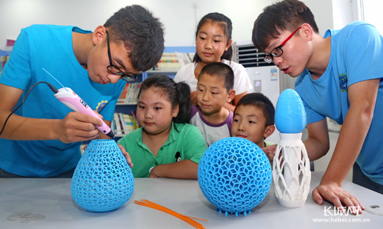 長城網(wǎng)秦皇島7月20日訊(記者 祖迪 通訊員 曹建雄)7月20日,秦皇島市海港區(qū)西港路街道聯(lián)合秦皇島市創(chuàng)客協(xié)會開展了“少年創(chuàng)客嘿科技”暑期創(chuàng)客科技進(jìn)社區(qū)體驗(yàn)活動。 ![]() 大學(xué)生志愿者指導(dǎo)在水一方社區(qū)小朋友體驗(yàn)3D打印筆。通訊員 供圖