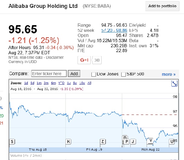 2016年8月19日(周五),據(jù)美國(guó)金融新聞和分析服務(wù)網(wǎng)站StreetInsider報(bào)道,阿里巴巴集團(tuán)SEC提交的一份監(jiān)管文件中披露信息稱,該集團(tuán)創(chuàng)始人及執(zhí)行董事長(zhǎng)馬云以及出于馬云及其家人利益考慮而建立的一個(gè)信托基金旗下的一個(gè)實(shí)體已經(jīng)根據(jù)1934年美國(guó)證券法10b5-1條規(guī)定采用了一項(xiàng)預(yù)先安排的股票銷售計(jì)劃。 這項(xiàng)計(jì)劃允許馬云在始于2016年9月份的12個(gè)月時(shí)間里出售最多990萬(wàn)股阿里巴巴集團(tuán)股票。按照目前股票價(jià)格,990 萬(wàn)股份對(duì)應(yīng)市值約9.5億美元。 文件稱,該計(jì)劃是出于普通財(cái)富規(guī)劃和履行慈善承諾之目的而被采用的。在馬云實(shí)益持有的阿里巴巴集團(tuán)股票中,計(jì)劃最多出售的990萬(wàn)股所占比例為5%左右。根據(jù)這項(xiàng)計(jì)劃,股票出售活動(dòng)將按照基于價(jià)格和交易量限制的固定交易指示來(lái)間或進(jìn)行,并由一家第三方經(jīng)紀(jì)公司負(fù)責(zé)執(zhí)行。 1934年美國(guó)證券法10b5-1條規(guī)定允許公司高管和董事采用書面的、預(yù)先安排的股票交易計(jì)劃來(lái)履行承諾和滿足財(cái)務(wù)規(guī)劃需求,但需將股票交易安排在較長(zhǎng)的一段時(shí)間里以降低市場(chǎng)可能因此而受到的任何影響,以及避免有關(guān)公司高管和董事是否擁有重大的非公開信息的憂慮。 2016年8月22日,周一,阿里股票價(jià)格出現(xiàn)下跌,當(dāng)天的最底跌至94.75美元,每股跌幅超過(guò)2美元;當(dāng)天的收盤價(jià)格為95.65美元,和上周五收盤比較跌幅為1.25%, 并且在盤后繼續(xù)下跌0.36%。這是自從2016年8月11日,阿里公布最新財(cái)報(bào)之后每個(gè)交易日收盤價(jià)格連續(xù)上漲之后,首次出現(xiàn)收盤價(jià)格下跌的情況。看來(lái),市場(chǎng)對(duì)馬云的減持計(jì)劃目前還是有一些反應(yīng)的。