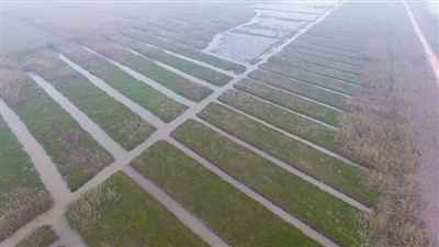 洞庭湖濕地被養(yǎng)殖戶“分割”成稻田模樣。張建斌攝