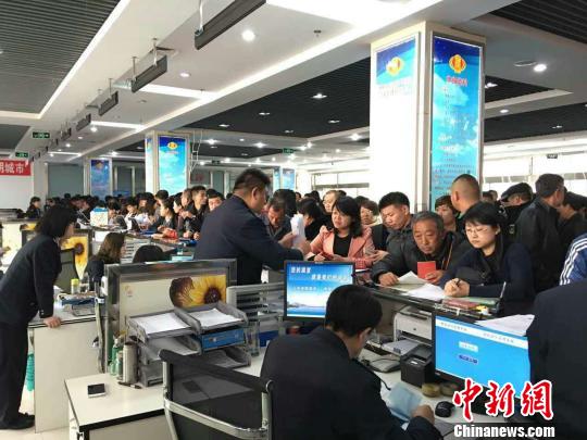 秦皇島市不動產(chǎn)登記中心大廳內(nèi)擠滿了購房者 王天譯 攝 中新網(wǎng)秦皇島4月19日電 (記者 肖光明 王天譯)19日上午9點,秦皇島市不動產(chǎn)登記中心大廳內(nèi)人頭攢動。家住秦皇島市撫寧區(qū)的陳女士一早就趕了過來,想把新買的一套海港區(qū)的“學區(qū)房”過戶到自己名下。但情形還是有點出乎她的意料,“我7點10分趕到房產(chǎn)交易大廳時,門前已經(jīng)排了長長的一條隊伍。”