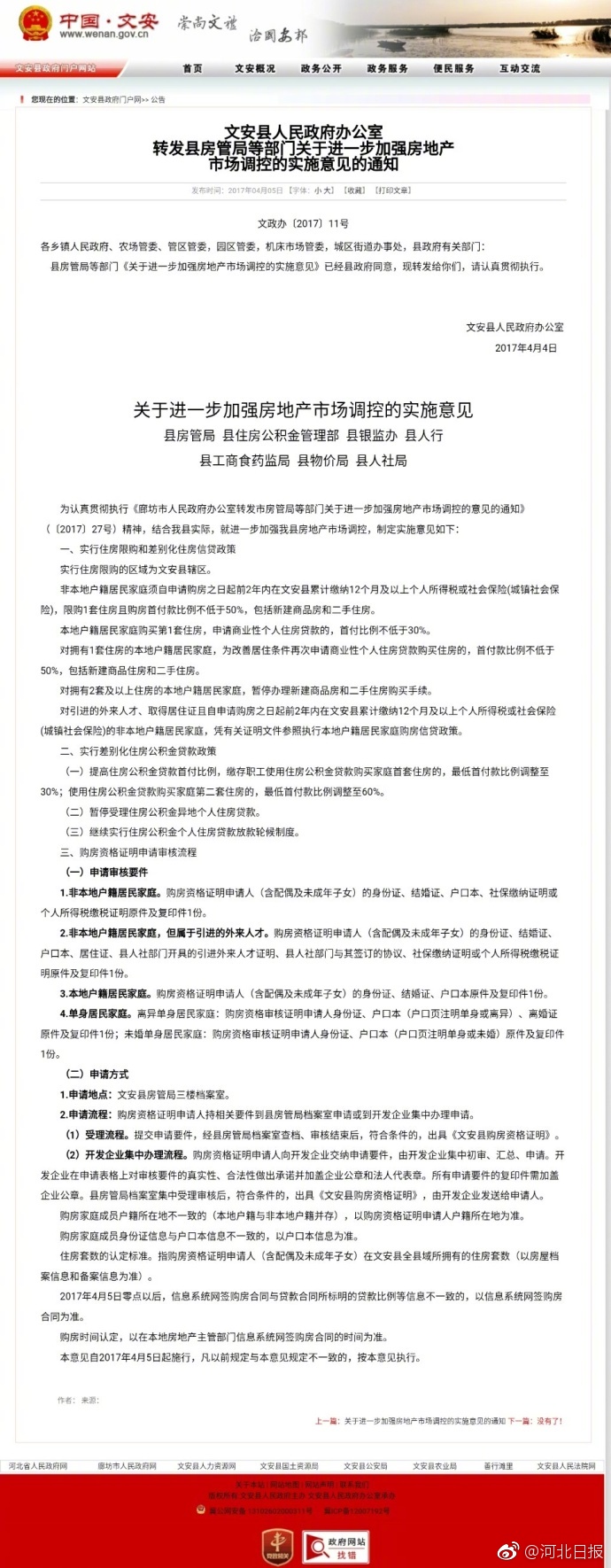 [霸州、文安限購!外地戶口限購1套,首付50%]4月4日霸州市和文安縣相關(guān)部門分別出臺各自《關(guān)于進一步加強房地產(chǎn)市場調(diào)控的實施意見》,文件中均明確非本地戶籍居民家庭須自申請