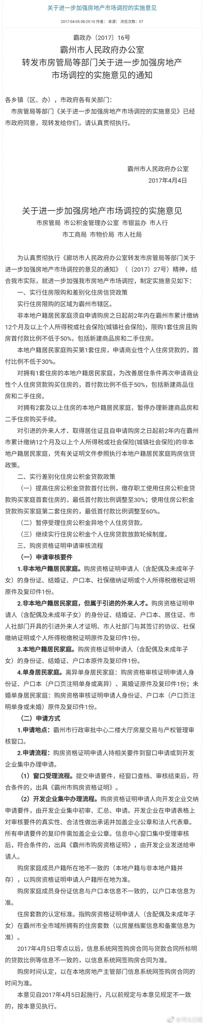 [霸州、文安限購!外地戶口限購1套,首付50%]4月4日霸州市和文安縣相關(guān)部門分別出臺各自《關(guān)于進一步加強房地產(chǎn)市場調(diào)控的實施意見》,文件中均明確非本地戶籍居民家庭須自申請購房之日起前2年內(nèi)在當(dāng)?shù)乩塾嬂U納12個月及以上個人所得稅或社會保險(城鎮(zhèn)社會保險),限購1套住房且購房首付款比例不低于50%。本地戶籍居民家庭購買第1套住房,申請商業(yè)性個人住房貸款的,首付比例不低于30%↓ ![]() ![]()