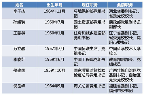 近期多家中央單位黨組書記調(diào)整 (統(tǒng)計(jì)至2017年6月14日,按任職發(fā)布時(shí)間排序) 近期,多家中央單位黨組書記調(diào)整。他們分別是李干杰任環(huán)境保護(hù)部黨組書記,孫紹騁任國(guó)土資源部黨組書記,王蒙徽任住建部黨組書記,萬(wàn)立駿任中國(guó)僑聯(lián)黨組書記,李曉紅任中國(guó)工程院黨組書記,侯建國(guó)任質(zhì)檢總局黨組書記,倪岳峰任海關(guān)總署黨組書記。記者通過(guò)梳理此輪履新的七位中央單位黨組書記的履歷,發(fā)現(xiàn)專業(yè)對(duì)口、經(jīng)驗(yàn)豐富的人才愈加受到重用。 看點(diǎn)一:“讓專業(yè)的人干專業(yè)的事情” 專業(yè)型、知識(shí)型人才備受重用 此輪多家中央單位黨組書記密集調(diào)整,專業(yè)型、知識(shí)型人才備受重用。“讓專業(yè)的人干專業(yè)的事”,把學(xué)有所長(zhǎng)、干有所成的干部,放在能充分發(fā)揮其專業(yè)優(yōu)勢(shì)、專業(yè)特長(zhǎng)的崗位上,才能更好地將人才優(yōu)勢(shì)轉(zhuǎn)化為發(fā)展優(yōu)勢(shì)。 新任環(huán)保部黨組書記李干杰畢業(yè)于清華大學(xué)核反應(yīng)堆工程與安全專業(yè),高級(jí)工程師,他曾先后在環(huán)保部工作十多年,專業(yè)經(jīng)歷豐富。李干杰歷任國(guó)家環(huán)境保護(hù)總局核安全與輻射環(huán)境管理司副司長(zhǎng),核安全中心主任、黨委副書記(正局級(jí)),核安全司司長(zhǎng)等職務(wù)。2006年12月任國(guó)家環(huán)境保護(hù)總局副局長(zhǎng)、黨組成員、國(guó)家核安全局局長(zhǎng)。2008年3月任環(huán)境保護(hù)部副部長(zhǎng)、黨組成員、國(guó)家核安全局局長(zhǎng)。2016年10月任河北省委副書記,省委黨校校長(zhǎng)。 新任住建部黨組書記王蒙徽同樣畢業(yè)于清華大學(xué),是建筑系科班出身。他擁有工學(xué)博士學(xué)位,副教授職稱。1995年8月,他赴地方任職,出任廣東省增城市副市長(zhǎng)。而后他又擔(dān)任過(guò)廣東省廣州市建設(shè)委員會(huì)村鎮(zhèn)建設(shè)處處長(zhǎng),廣東省廣州市城市規(guī)劃局副局長(zhǎng)、局長(zhǎng)職務(wù),長(zhǎng)期從事城市建設(shè)規(guī)劃工作。王蒙徽在廣東工作了18年,還曾擔(dān)任過(guò)廣州市番禺區(qū)委副書記、區(qū)長(zhǎng),汕尾市委副書記、市長(zhǎng),云浮市委書記、市人大常委會(huì)主任。2011年12月,王蒙徽任福建省政府副省長(zhǎng)、黨組成員,后任福建省委常委、廈門市委書記。2016年8月,任遼寧省委常委、沈陽(yáng)市委書記,同年12月當(dāng)選省委副書記。 看點(diǎn)二:大學(xué)校長(zhǎng)接連履新 “學(xué)而優(yōu)則仕”新常態(tài) 從此輪履新的七位黨組書記的簡(jiǎn)歷來(lái)看,萬(wàn)立駿、李曉紅、侯建國(guó)三人都曾經(jīng)擔(dān)任過(guò)重點(diǎn)大學(xué)校長(zhǎng)職務(wù)。萬(wàn)立駿、侯建國(guó)兩人都曾擔(dān)任過(guò)中國(guó)科學(xué)技術(shù)大學(xué)校長(zhǎng),同時(shí)兩人都是中國(guó)科學(xué)院院士。李曉紅是中國(guó)工程院院士。 萬(wàn)立駿,1957年7月生,遼寧大連人,獲日本東北大學(xué)博士學(xué)位,中國(guó)科學(xué)院院士。萬(wàn)立駿曾任中國(guó)科學(xué)院化學(xué)研究所所長(zhǎng),中國(guó)科學(xué)院分子科學(xué)中心主任。他于2015年3月至2017年6月,任中國(guó)科學(xué)技術(shù)大學(xué)校長(zhǎng)。 李曉紅,1959年6月生,重慶合川人,畢業(yè)于重慶大學(xué)采礦工程專業(yè),中國(guó)工程院院士。李曉紅曾擔(dān)任過(guò)重慶大學(xué)副校長(zhǎng)、校長(zhǎng),2010年任武漢大學(xué)校長(zhǎng),2016任教育部副部長(zhǎng)、黨組成員。 侯建國(guó),1959年10月生,福建福清人,中國(guó)科學(xué)技術(shù)大學(xué)基礎(chǔ)物理中心固體物理專業(yè)畢業(yè),中國(guó)科學(xué)院院士。2000年,侯建國(guó)任中國(guó)科學(xué)技術(shù)大學(xué)副校長(zhǎng),后任校長(zhǎng)。2015年任科學(xué)技術(shù)部副部長(zhǎng)、黨組成員,2016年任廣西壯族自治區(qū)黨委副書記。 看點(diǎn)三:基層經(jīng)歷豐富更吃香 或成重點(diǎn)考察標(biāo)準(zhǔn) 《從近期高官調(diào)整透視中央用人導(dǎo)向》一文指出,“有豐富經(jīng)歷的干部更吃香”。將基層工作經(jīng)歷作為選拔任用干部的一條基本原則,同等條件下優(yōu)先提拔重用具有基層工作經(jīng)歷的干部,樹(shù)立向具有基層經(jīng)歷干部?jī)A斜的用人導(dǎo)向。記者梳理近期履新的中央單位黨組書記簡(jiǎn)歷,發(fā)現(xiàn)他們大多擁有多個(gè)單位和崗位歷練的經(jīng)驗(yàn)。新任環(huán)保護(hù)黨組書記李干杰曾于1998年1月至1999年1月,掛任湖南省平江縣委副書記、科技部駐湘科技扶貧團(tuán)團(tuán)長(zhǎng)。新任國(guó)土資源部黨組書記孫紹騁曾在中央國(guó)家機(jī)關(guān)和地方多個(gè)崗位和職務(wù)歷練,他大學(xué)畢業(yè)之后在民政部工作了28年,從一線基層的干部一直干到民政部副部長(zhǎng)。2012年8月,任山東省副省長(zhǎng)、黨組成員。而后調(diào)任山西,出任山西省委常委、統(tǒng)戰(zhàn)部部長(zhǎng),山西省委常委、副省長(zhǎng),黨組成員。2017年回到民政部,出任民政部黨組副書記、副部長(zhǎng)。 倪岳峰,1964年9月生,安徽岳西人,工學(xué)博士。他曾經(jīng)當(dāng)過(g