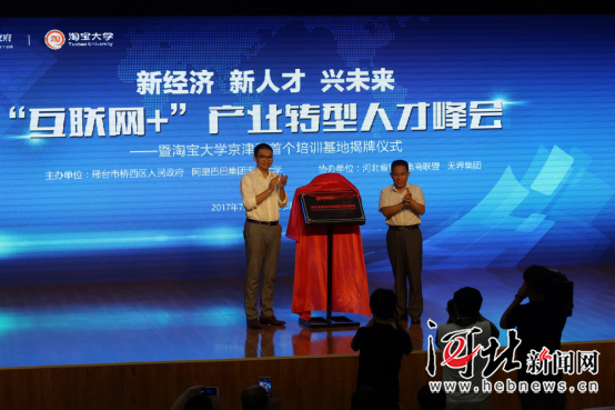 7月12日,淘寶大學(xué)京津冀首個培訓(xùn)基地揭牌儀式在邢臺市橋西區(qū)舉行。 記者王永晨攝 河北新聞網(wǎng)7月12日邢臺電(記者王永晨)今天,在邢臺市橋西區(qū)創(chuàng)業(yè)服務(wù)中心,橋西區(qū)政府與阿里