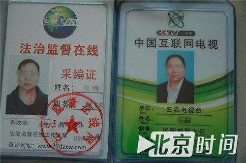 一個(gè)持有多個(gè)“媒體證件”。圖/李英強(qiáng) 嫌犯多為親友關(guān)系 史興平,37歲,小學(xué)文化,無(wú)業(yè),阜城縣漫河鄉(xiāng)楊小莊村人。 如果不是被抓,史興平不知還要在村里要耀武揚(yáng)威多久。 漫河鄉(xiāng)以種植蔬菜瓜果聞名,兩年前,史興平還扛著鋤頭去西瓜地里除草,不知什么時(shí)候,村里人就聽(tīng)說(shuō)他成了記者,至于是電視臺(tái)還是報(bào)紙的記者,并沒(méi)人能說(shuō)清。 7月6日,史興平穿著藍(lán)色囚服、坐在審訊椅上敘說(shuō)著敲詐企業(yè)過(guò)程的畫(huà)面被央視曝光,至此,村民才知他是個(gè)假記者。 村民稱(chēng),史興平不務(wù)正業(yè),原本有個(gè)持家的好妻子,兩年前離婚走了,留下10余歲兒子跟著奶奶一起生活。 史興平近兩年一直在外漂著很少回村,一次喝酒后回村,借著酒勁要進(jìn)村委會(huì)喊廣播,被制止后罵罵咧咧的離去。村民們當(dāng)時(shí)就懷疑,就這素質(zhì)不知怎么當(dāng)上的記者,遲早會(huì)出事。 “小平很少回家,究竟在外干啥也從不對(duì)我說(shuō),只是偶爾回來(lái)給我二三百的生活費(fèi)。”史興平年邁的母親告訴北京時(shí)間“暴風(fēng)眼”(微信號(hào):btime007)。 面對(duì)警察的訊問(wèn),史興平透露,自己的“轉(zhuǎn)型”是從結(jié)識(shí)賈瑞開(kāi)始的。 賈瑞和馬林為該團(tuán)伙的主要成員,兩人從事媒體工作達(dá)10余年之久,自稱(chēng)“資深媒體人”。 馬林供述,之前曾在媒體做過(guò)發(fā)行工作,對(duì)新聞媒體有一定了解,也積累下許多媒體和社會(huì)人脈關(guān)系,對(duì)外一直自稱(chēng)記者,時(shí)間久了大家誤以為她就是真記者,有時(shí)就連自己都深信不疑。 因長(zhǎng)期在本地作案,與較多企業(yè)負(fù)責(zé)人形成相對(duì)熟絡(luò)關(guān)系,不便親自出面,于是,兩人轉(zhuǎn)而指使成員作案。 史興平在和賈瑞學(xué)習(xí)“采訪業(yè)務(wù)”后另立門(mén)戶(hù),通過(guò)中國(guó)新聞播報(bào)社名義,四處網(wǎng)羅人員建起了自己的隊(duì)伍。 負(fù)責(zé)該案件的警官?gòu)垈虮本r(shí)間“暴風(fēng)眼”介紹,該團(tuán)伙由三個(gè)小團(tuán)伙組成,小團(tuán)伙成員相對(duì)固定,多以相熟程度、親緣關(guān)系結(jié)伙,文化程度普通不高。 第一小團(tuán)伙史興平、趙桂風(fēng)、張強(qiáng)、申名、杜東、孫友等11人組成;第二小團(tuán)伙馬林、宋軍等5人組成;第三小團(tuán)伙賈瑞、王強(qiáng)等人組成。 其中馬林、宋軍是一對(duì)“母子兵”;團(tuán)伙成員史興平、張強(qiáng)、孫友、申名、杜東、賈瑞曾有搶劫、盜竊等犯罪前科,孫友、杜東曾是獄友。 辦案警官?gòu)垈榻B,團(tuán)伙中成員文化水平普遍是小學(xué)或初中,僅有一名年齡最小、學(xué)歷最高的李光,大學(xué)畢業(yè)后因未找到合適就業(yè)單位,加入該團(tuán)伙。