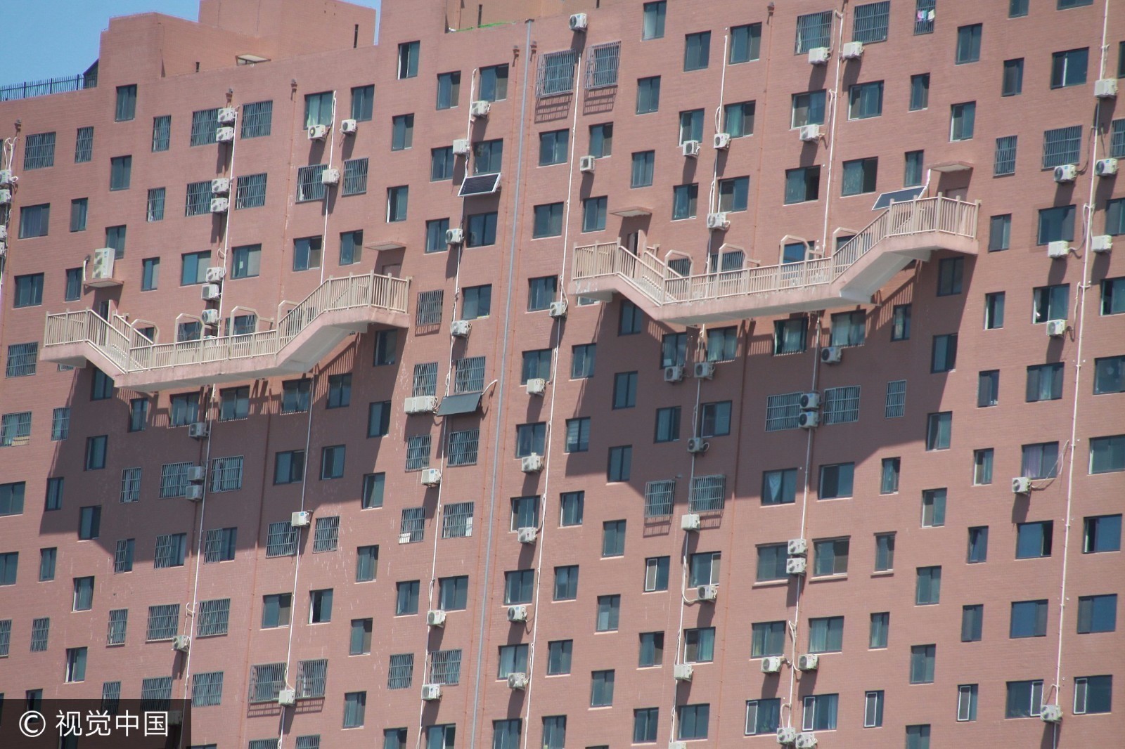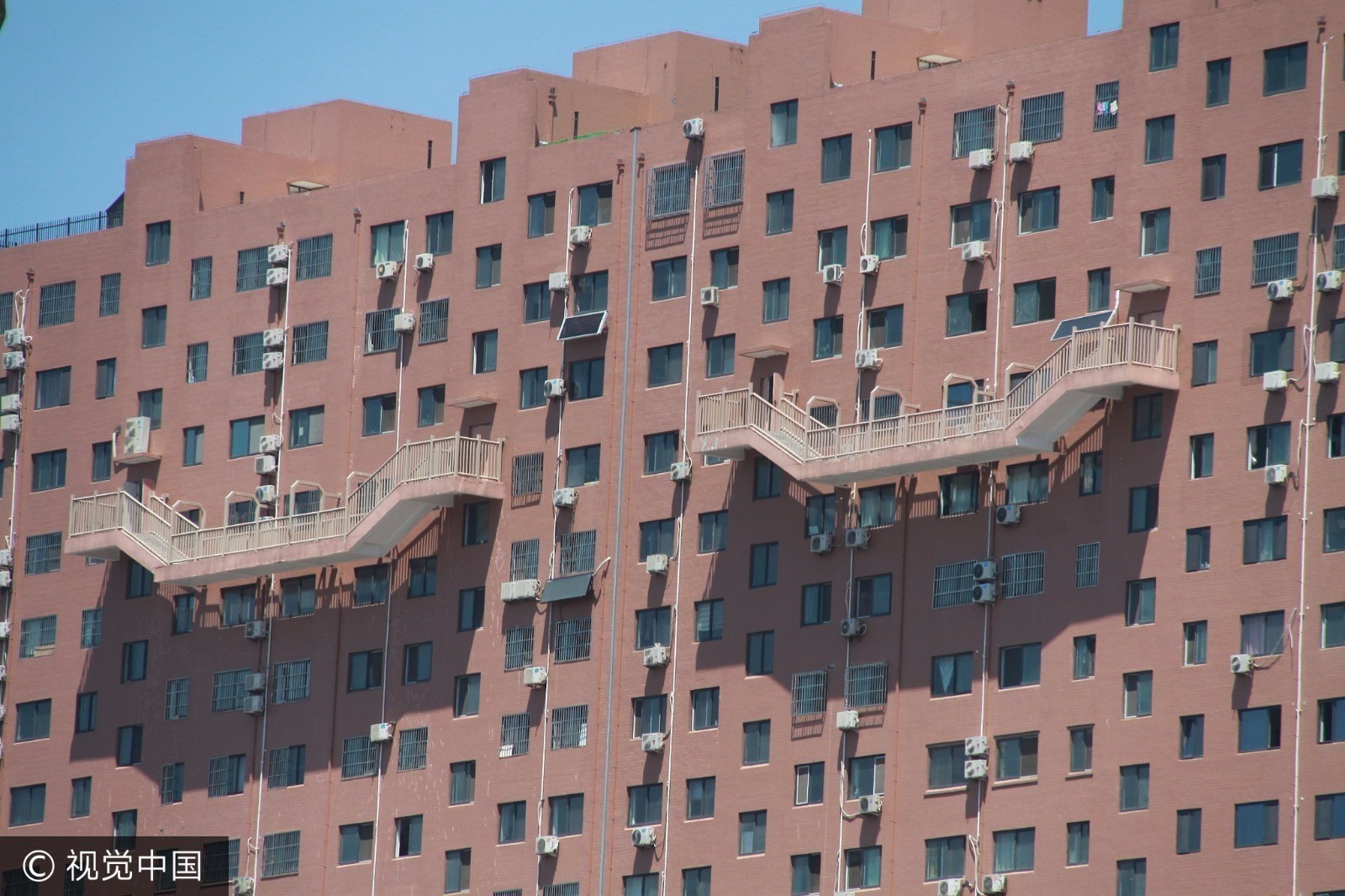 2017年7月10日,在山東濟南北園大街上,一幢大樓四個樓梯半懸在50米高的空中,令不少路人看到后直呼心驚膽顫,也不敢走這種樓梯。