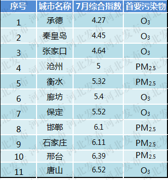 日前,省環(huán)保廳公布2017年7月份全省11市及164縣(市、區(qū))環(huán)境空氣質(zhì)量排名!相比6月份排名前20被張家口及承德包攬,本期排名最大亮點(diǎn)為秦皇島1區(qū)、邢臺(tái)3縣、廊坊3縣、保定1縣沖進(jìn)綜合指數(shù)排名前20!