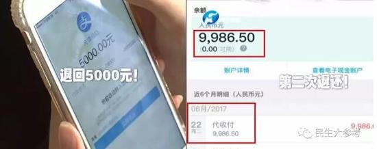 上圖是騙子在8月21日下午和8月22日下午分別還給小張的錢款,還剩余4100多元未退還。