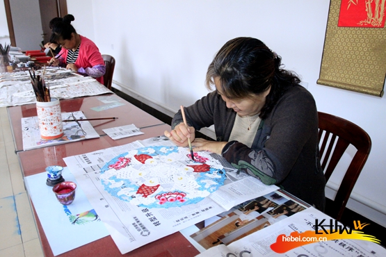 中國蔚縣剪紙產(chǎn)業(yè)集聚區(qū)。記者張世豪攝 南張莊剪紙風(fēng)情小鎮(zhèn) 蔚縣剪紙發(fā)源地—蔚州鎮(zhèn)南張莊村坐落在中國蔚縣剪紙產(chǎn)業(yè)集聚區(qū),被譽(yù)為“中國剪紙第一村”。該村是全國最大的點(diǎn)彩剪紙專業(yè)村和加工基地,剪紙產(chǎn)業(yè)成為該村的主導(dǎo)產(chǎn)業(yè),是全國最大的點(diǎn)彩剪紙專業(yè)村加工基地。村內(nèi)現(xiàn)有剪紙廠家12處,剪紙銷售商鋪20多家。剪紙宗師王老賞就出自該村,有王老賞、周永明故居2處,舊堡門樓1處,文昌閣、魁星樓等多處人文遺產(chǎn)。