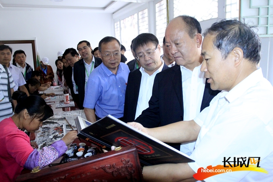 與會(huì)領(lǐng)導(dǎo)、嘉賓、媒體記者在南張莊剪紙風(fēng)情小鎮(zhèn)參觀。記者張世豪攝