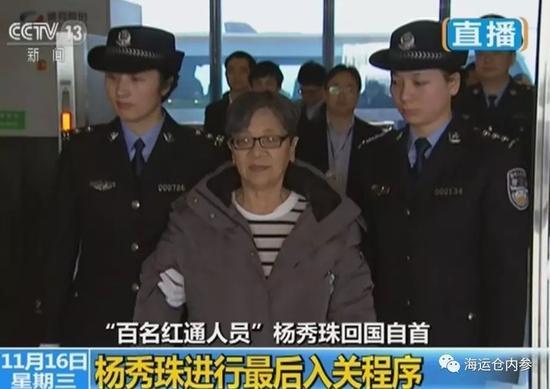 2016年11月16日,在中央反腐敗協(xié)調(diào)小組國際追逃追贓工作辦公室的統(tǒng)籌協(xié)調(diào)下,經(jīng)中央有關(guān)部門和浙江省追逃辦密切協(xié)作,潛逃海外13年的“百名紅通人員”頭號嫌犯楊秀珠回國投案自首。