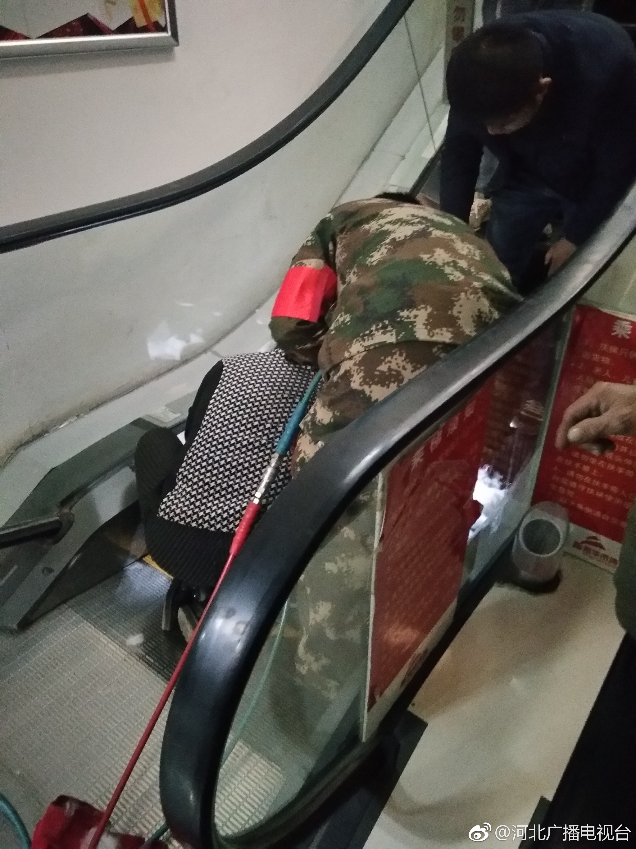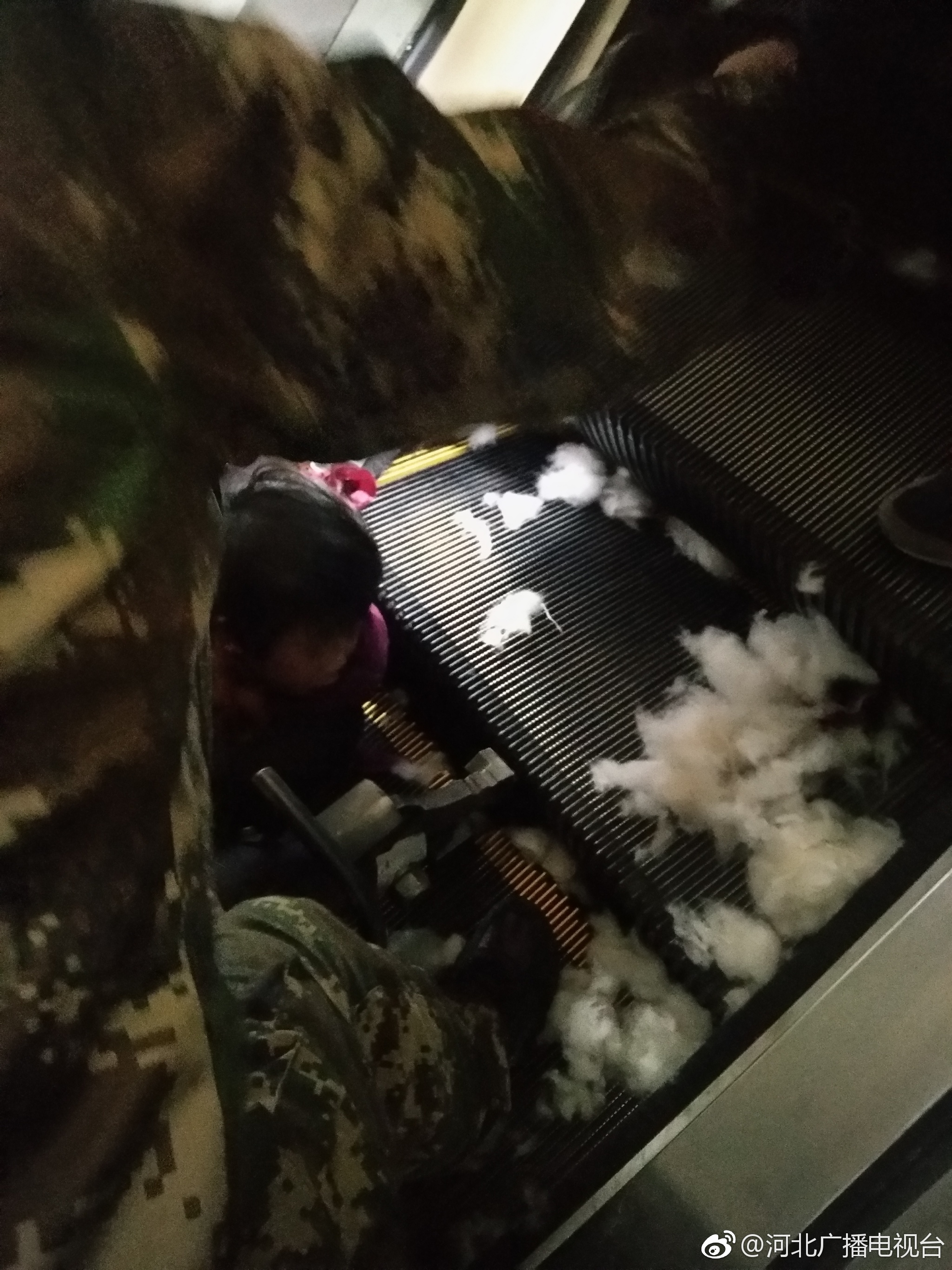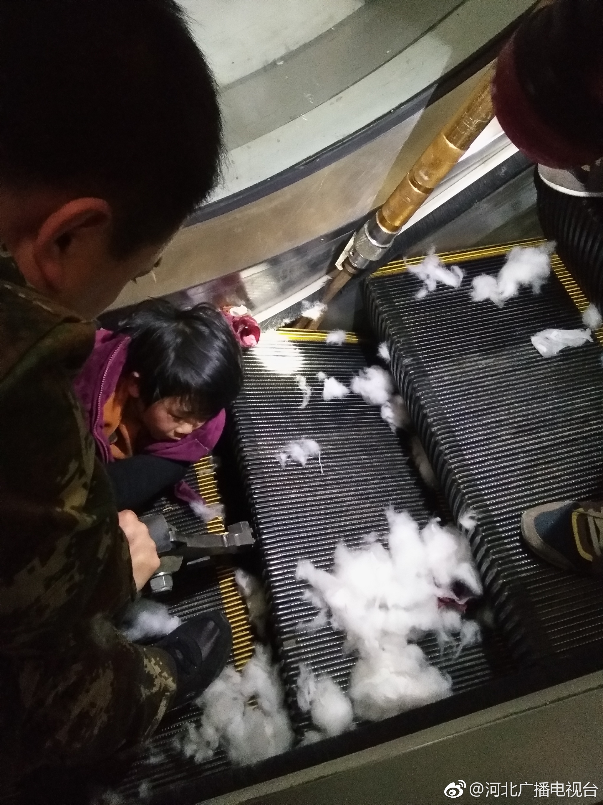 1月15日下午,滄州任丘新裕華市場南門,一名四五歲左右的小女孩胳膊不慎卡在一樓自動扶梯縫隙處。消防任丘中隊接到群眾報警后立即趕到現(xiàn)場,經(jīng)觀察,小女孩胳膊盡管被咬住,大
