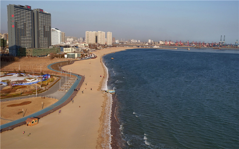 空中俯瞰秦皇島市海港區(qū)金夢海灣(1月20日攝)。近日,河北省秦皇島市為進一步強化沿岸海域海洋環(huán)境保護,加強海岸 沙灘 保護與修復(fù),實現(xiàn)水清、岸綠、灘凈、灣美、物豐的治理