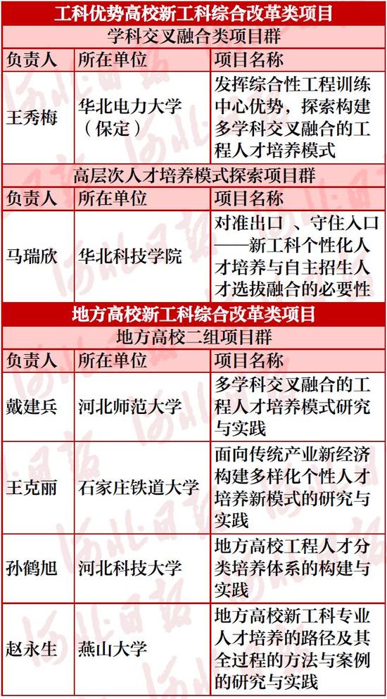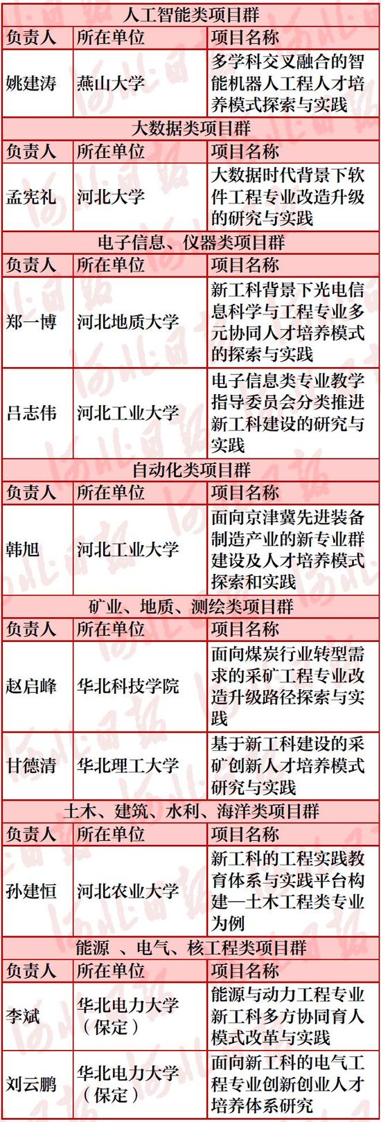 近日,教育部公示了新工科研究與實踐項目認定結(jié)果,612個項目被認定為國家級新工科研究與實踐項目,其中我省11所高校16個項目入選 新工科研究與實踐項目公示名單 (河北) 新工科