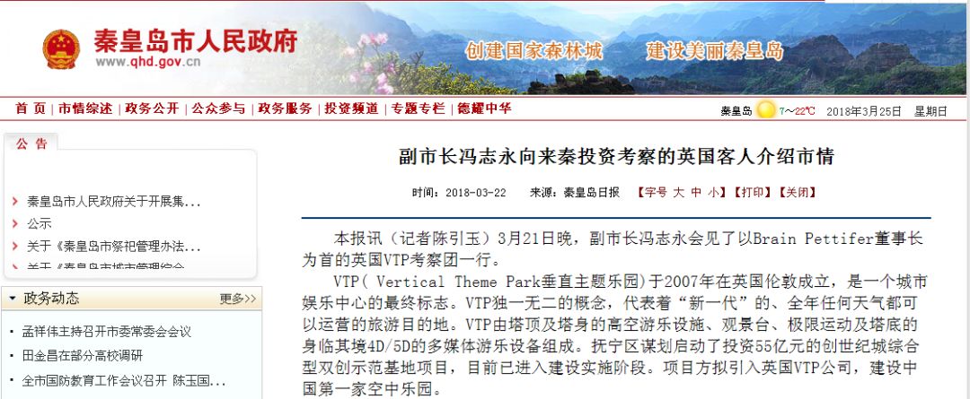 據(jù)秦皇島日?qǐng)?bào),3月21日晚,秦皇島市副市長(zhǎng)馮志永會(huì)見(jiàn)了以Brain Pettifer董事長(zhǎng)為首的英國(guó)VTP考察團(tuán)一行。