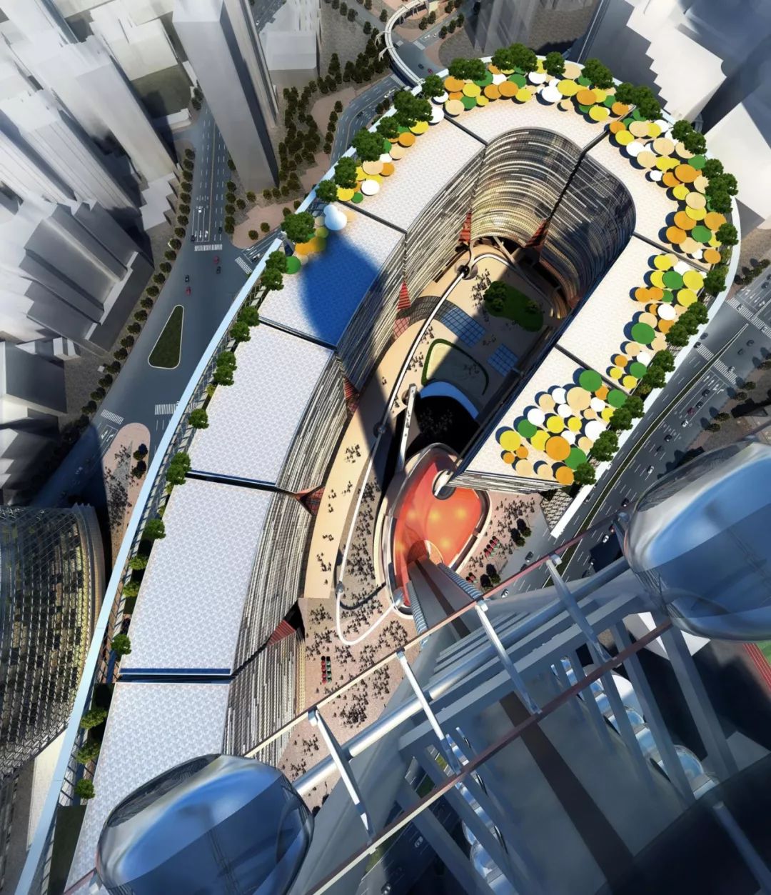 在建筑頂層打造游樂(lè)場(chǎng)所,游樂(lè)項(xiàng)目包含了高塔游樂(lè)園、虛擬游樂(lè)、極限運(yùn)動(dòng)、高空冒險(xiǎn)、兒童樂(lè)園及FEC、水幕燈光表演。