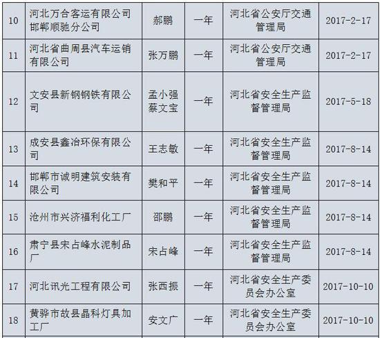 河北發(fā)布2017年安全生產(chǎn)不良記錄“黑名單”企業(yè)