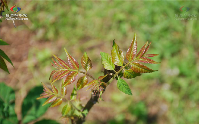 圖5.曼陀羅 曼陀羅的花蕾和秋葵的嫩果實(shí)外觀十分相似 ,很容易混淆。主要分辨方法如下: 曼陀羅的葉不裂,基部為不對(duì)稱楔形,花萼筒狀,頂端緊圍花冠筒,有5淺裂,花瓣合生呈喇叭狀,果實(shí)卵狀;秋葵的葉掌狀分裂 ,花瓣倒卵形分離 ,果實(shí)筒狀塔形,被糙毛,內(nèi)有小球形種子多數(shù) 。 3、勿把漆樹芽當(dāng)成香椿芽 香椿被稱為“樹上蔬菜”,香椿芽為楝科香椿(Toona sinensis (A. Juss.) Roem..)的嫩芽。香椿芽氣味芳香,食之鮮美可口,《救荒本草》記載:采嫩芽炸熟,水浸淘凈,油鹽調(diào)食。香椿不僅營(yíng)養(yǎng)豐富,且具有較高的食療作用,古醫(yī)書記載:椿菜性寒,具有澀腸止血、健胃理氣、殺蟲固精等功效。香椿分布于我國(guó)中部和南部。生于山地雜木林中,現(xiàn)在各地已有廣泛栽培。