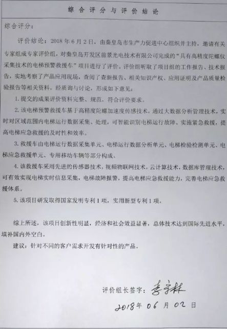 世界首臺,電梯預(yù)警救援車在秦皇島問世