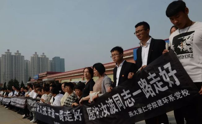 巍峨燕山青松肅立, 浩瀚渤海深流咽聲。 昨日港城人民淚別沈汝波。 ![]() 優(yōu)秀共產(chǎn)黨員、中國好人、河北省道德模范、燕趙楷模沈汝波因患食道癌醫(yī)治無效,于6月1日凌晨1時15分不幸逝世,享年58歲。 6月3日上午,沈汝波同志遺體告別儀式在市殯儀館告別大廳舉行。孟祥偉、張瑞書、田金昌、劉辰彥、郝占敏、薛永純、閆五一、劉文萍、劉新宏、李國勇、陳玉國、馮國林、王景田、廉茹艷、高恩澤等市領導,市縣(區(qū))有關(guān)單位負責同志以及各界代表400多人參加沈汝波告別儀式,全市近萬名群眾用沿途送別等方式,向沈汝波表達哀思和懷念。 ![]() 上午8時整 遺體告別儀式正式開始 告別大廳凝重而莊嚴。大廳正中央,沈汝波同志的遺體身著他喜愛的綠軍裝,覆蓋著中國共產(chǎn)黨黨旗,靜臥在潔白的菊花叢中,寧靜安詳。中共秦皇島市委、秦皇島市人大常委會、秦皇島市人民政府、政協(xié)秦皇島市委員會、秦皇島軍分區(qū),市直相關(guān)部門、各縣區(qū)和社會各界敬獻的花圈一字排開,擺放在告別大廳的周圍。 ![]() 遵從沈汝波生前遺愿,他去世后一切從簡,不搭靈棚,不大張旗鼓搞儀式,告別儀式莊重簡潔。人們眼含熱淚肅立默哀、三鞠躬,依次排成長隊走上前,再看老沈一眼。 ![]() ![]() 輕輕獻上一朵菊花, 再鞠上一躬。 隊伍是那樣長, 就像人們的不舍,綿綿不盡。 ![]() ![]() ![]() ![]() 隊伍里,55歲的姜志鳳走得踉蹌,她5點出門,倒了兩趟公交車趕到了告別廳,終于又見到了老沈。“跟他一起當志愿者還沒當夠呢。”姜志鳳哭著說,她家住北戴河新區(qū),去年她加入了黨義志愿者服務隊在北戴河區(qū)的分隊。 海港區(qū)先茂里社區(qū)居民朱國順向沈汝波遺體凝視了許久,他是老沈當初在小區(qū)里建起巡邏隊的隊員,也是第一個接過他的志愿者團隊袖標的老鄰居,“老伙計都來送你了,當初你帶著我們是做好事的小游擊隊,現(xiàn)在你看看,已經(jīng)成大部隊了!” 馬志英特意準備了一大束菊花,他和同事王燕梅一大早就來到了告別廳。“我沒見過沈汝波,但他的事都聽說過,他是個有信仰的人,也是個實干的人,我倆在單位聽說他去世了,特別難過,就約好來送送,他身上讓我們學習的東西太多了。”馬志英說。 ![]() 告別儀式結(jié)束后, 人們還久久不愿散去。 黨義服務隊的志愿者王曉靜, 一直在安慰著送行的人群。 她說: “除了自發(fā)來的人,黨義服務隊總隊和各個分隊都到齊了,有最初附近的先茂里小學、先茂里幼兒園的志愿隊,也有后來成立起來的燕山大學、第四醫(yī)院等遍及各行各業(yè)、各個年齡層的隊伍,陽光義工、藍天救援隊、愛心車隊這些協(xié)作愛心組織也都來送他了。沈叔心愿是志愿者隊伍能擴大,能年輕化,今天的成績,他一定是欣慰的。” ![]() ![]() ![]() “沈老一路走好!” 靈柩車啟動, 殯儀館廣場上送行的隊伍 已排到了大門外, 喊著沈汝波的名字, 人們用軍禮送別老兵。 ![]() ![]() 上午10時 載著沈汝波靈柩的車隊經(jīng)過海港區(qū)秦皇東大街與文化路交叉口,由300多名學生、志愿者、街居干部、熱心市民自發(fā)組成的送行隊伍早已等候在路邊,人們拉著黑底白字的緬懷挽聯(lián)條幅,默默地為沈汝波送行。 ![]() 得知車隊從這里經(jīng)過,東環(huán)路街道辦事處72歲的老黨員荊國舫提前1個多小時就趕了過來。作為海港區(qū)“草根宣講團”團長,他和沈汝波經(jīng)常在區(qū)里的活動現(xiàn)場和開會時碰到,兩人有過幾次接觸,他還曾請沈汝波給他們社區(qū)作過報告。“他真是一個高尚偉大的人。”荊國舫回憶,兩人最后一次見面是去年區(qū)里的一個會上,“他特別瘦,人也很憔悴??蛇€是那么熱心,聽說我腰腿不好,還給我做了按摩。”荊國舫眼圈紅了。 東北大學秦皇島分校青年志愿者協(xié)會主席李瑞鑫和十多名老師同學站在送行隊伍的最前面,他們手中拉著“沉痛悼念沈汝波同志,好人精神永存”的挽聯(lián)條幅是前一天特意定制的。“雖然和沈汝波沒見過面,但我們都知道他的事跡,一個老兵要做10萬件好事的故事。”李瑞鑫說,學校經(jīng)常開展學習沈汝波的志愿者活動,大家對沈汝波特別敬重和敬佩,他一直都是同學們學習的榜樣。我們來送送他,更要繼續(xù)學習傳承沈汝波精神,盡力去幫助更多需要幫助的人。 ![]() 秦皇島市第一中學的20多名教師也自發(fā)趕過來為沈汝波送行。“沈汝波2014年曾來我們學校給學生作過一次報告。”雖然已過去近4年,工會主席喬鳳玲仍記得沈汝波作報告時的樣子,“他講得特別好,語言樸實感人。”喬鳳玲說,全校師生都為他鼓掌,心情特別振奮,場景歷歷在目,就如同發(fā)生在昨天。“他人走了,精神卻永存,我們要把這種精神傳下去,立德樹人,培養(yǎng)更多優(yōu)秀的人才。” 上午10時20分 車隊駛到海港區(qū)市民中心附近,道路兩旁,近300名海港區(qū)機關(guān)干部職工舉著“緬懷沈汝波,向好人致敬”“沉痛悼念沈汝波同志”的條幅為他送行,許多附近群眾也自發(fā)加入到隊伍中來。他們整齊站立,表情凝重,送別好人沈汝波最后一程。 ![]() ![]() 送別隊伍中,一對母子表情凝重,臉上寫滿了悲傷。“今天帶著6歲的兒子來送別好人沈汝波是一件特別有教育意義的事情,也希望在孩子心里種下一顆‘做好人’的種子,從身邊的點滴小事做起,將沈汝波精神發(f