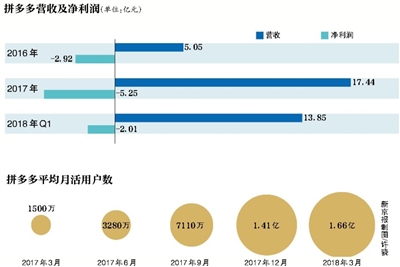拼多多創(chuàng)始人、董事長(zhǎng)兼CEO黃崢。圖/視覺中國(guó) 7月17日,拼多多向美國(guó)證券交易委員會(huì)(SEC)更新了招股書。拼多多計(jì)劃發(fā)行8560萬股美國(guó)存托股票(ADS,下同),承銷商的超額配售比例為1284萬股,發(fā)行價(jià)為每股16-19美元。以此計(jì)算,拼多多擬融資額度在15.75億美元至18.70億美元之間。新京報(bào)記者從多個(gè)信源了解到,拼多多將于7月26日在納斯達(dá)克掛牌交易。 從成立到IPO,拼多多用了不到3年。就在市場(chǎng)驚呼拼多多火箭般成長(zhǎng)的同時(shí),疑惑與爭(zhēng)議也隨之而來:不到3年如何獲得近3億活躍用戶?它的商業(yè)模式是什么?不缺錢的拼多多為什么還要上市? 上市前夜,拼多多迎來一場(chǎng)商家“圍城”風(fēng)波。有商家認(rèn)為拼多多“涉嫌放縱山寨產(chǎn)品、格式合同有悖公平原則”;還有的商家抱怨拼多多“懲罰”太重,平臺(tái)規(guī)則嚴(yán)苛。對(duì)此,拼多多方面以公司處于緘默期為由,并未置評(píng)。 “火箭”成長(zhǎng),拼多多成電商老三 17日,美國(guó)IPO研究公司IPOBoutique網(wǎng)站的信息顯示,拼多多將于7月26日在納斯達(dá)克掛牌。新京報(bào)記者從多個(gè)獨(dú)立信源處了解到,拼多多將于美東時(shí)間7月26日早9:30(北京時(shí)間當(dāng)天21:30)掛牌交易。拼多多方面以處于緘默期為由,對(duì)此不予置評(píng)。 創(chuàng)始人黃崢口中“3歲”的拼多多成立于2015年,定位是一家主打拼團(tuán)的社交電商。2016年9月黃崢將拼多多與其創(chuàng)辦的另一家平臺(tái)拼好貨合并,組建為目前的拼多多。 這家通過微信發(fā)起砍價(jià)或拼團(tuán)購(gòu)物信息而被多數(shù)用戶熟知的公司,創(chuàng)立之后成長(zhǎng)極其迅速。 招股書顯示,截至2017年12月31日拼多多的年活躍用戶為2.45億,而截至2018年3月31日的年活躍用戶達(dá)到2.95億,這意味著單季用戶增長(zhǎng)5000萬。2018年6月的采訪中,董事長(zhǎng)兼CEO黃崢稱,拼多多的月活躍用戶量近3億,月活躍商戶達(dá)到100萬。按照這一數(shù)字來看,拼多多已超過唯品會(huì),成為僅次于淘寶和京東的第三大電商平臺(tái)。 拼多多的快速成長(zhǎng)還體現(xiàn)在營(yíng)收上。2016年平臺(tái)營(yíng)收為5.05億元(人民幣,下同),到了2017年收入已經(jīng)達(dá)到17.44億元,增長(zhǎng)2倍有余;2018年僅第一季度營(yíng)收就達(dá)到了13.85億元,同比增長(zhǎng)37倍。 拼多多交易規(guī)模的增速同樣驚人。招股書顯示,2017年和2018年一季度,拼多多的總訂單量分別為43億單和17億單,2017年的GMV為1412億元。此前拼多多一高管在公開場(chǎng)合稱,2018年初的公司日訂單量已經(jīng)超過京東。 交易體量驚人,但拼多多還沒有實(shí)現(xiàn)盈利。招股書顯示,2016年、2017年和2018年Q1分別虧損2.92億元、5.25億元和2.01億元。 用戶的快速增長(zhǎng)不可避免地導(dǎo)致了拼多多用戶與巨頭的重疊。數(shù)據(jù)顯示,卸載淘寶的用戶有50.3%流向拼多多,卸載拼多多的用戶有78.3%流向淘寶,兩個(gè)平臺(tái)中部分人群出現(xiàn)高度重合性。 “對(duì)阿里來說,拼多多侵占了原本屬于淘寶的大量低端消費(fèi)市場(chǎng)。對(duì)京東來說,拼多多競(jìng)爭(zhēng)的是騰訊的資源支持。”獨(dú)立IT分析師唐欣稱,拼多多的出現(xiàn)打破了看似鐵板一塊的電商市場(chǎng),平臺(tái)也獲得了可觀的流量。 曾因“誘導(dǎo)分享”鏈接被微信封殺 “拼多多流量大得有點(diǎn)嚇人,經(jīng)常達(dá)到我們這邊快遞每天發(fā)貨的上限。”可心柔紙巾電商負(fù)責(zé)人吳立營(yíng)告訴新京報(bào)記者。 “少品類、高單量”的爆款策略是拼多多的核心商業(yè)模式,聯(lián)合創(chuàng)始人達(dá)達(dá)在一次媒體溝通會(huì)上這樣描述拼多多的商業(yè)邏輯,將大量產(chǎn)能投入到2至3款產(chǎn)品上,更少的生產(chǎn)線和更大的生產(chǎn)規(guī)模能大大降低制造成本。 像這樣的爆款產(chǎn)品,拼多多商家往往只賺取極低的利潤(rùn)。吳立營(yíng)以在拼多多上銷量為116萬件的爆款紙巾為例,向記者介紹了成本結(jié)構(gòu),按28包規(guī)格來算,平均每件售價(jià)29.9元,其中,生產(chǎn)成本為25.5元,快遞物流費(fèi)3.5元,凈利潤(rùn)僅為0.9元。 “那些被傳統(tǒng)電商所淘汰的低毛利商品,在這里幾乎是如魚得水,”唐欣稱,傳統(tǒng)電商平臺(tái)隨著商品品類的擴(kuò)張,出現(xiàn)了流量擁擠的問題,而基于社交推薦的拼多多幾乎所有的商品曝光都發(fā)生在社交平臺(tái)上。依靠微信的社交關(guān)系引流,是拼多多成功的核心因素,但也是其命門所在。 拼多多的成長(zhǎng)不靠大規(guī)模燒錢,而是一種結(jié)合了社交屬性的另類增長(zhǎng),“這種模式對(duì)傳統(tǒng)的燒錢式增長(zhǎng)帶來了巨大的威脅。”唐欣表示。 “騰訊對(duì)其涉嫌誘導(dǎo)分享的拼團(tuán)模式的寬容與否,是拼多多的風(fēng)險(xiǎn)之一,”有業(yè)內(nèi)人士稱,拼多多與京東雖然都是騰訊尋求流量變現(xiàn)和抗衡阿里的重要武器,但當(dāng)拼團(tuán)模式對(duì)用戶體驗(yàn)產(chǎn)生影響時(shí),騰訊將面臨抉擇。 3月9日晚,微博用戶“甜螺小菇?jīng)?rdquo;錄制視頻顯示,當(dāng)晚9點(diǎn)58分,拼多多微信服務(wù)號(hào)多個(gè)菜單點(diǎn)擊后出現(xiàn)“已停止訪問該網(wǎng)頁(yè)”