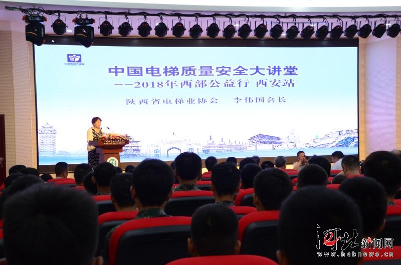 西安站大講堂現(xiàn)場。 西安,古稱長安、鎬京,是陜西省會(huì)、副省級市、關(guān)中平原城市群核心城市、絲綢之路起點(diǎn)城市、“一帶一路”核心區(qū)、中國西部地區(qū)重要的中心城市,國家重要的科研、教育、工業(yè)基地。2018年2月,國家發(fā)展和改革委員會(huì)、住房和城鄉(xiāng)建設(shè)部發(fā)布《關(guān)中平原城市群發(fā)展規(guī)劃》支持西安建設(shè)國家中心城市、國際性綜合交通樞紐、建成具有歷史文化特色的國際化大都市。 隨著城市的快速發(fā)展,西安市電梯數(shù)量持續(xù)快速增長,截至2017年7月底,全市在用電梯數(shù)量達(dá)7萬多臺(tái),占陜西省在用電梯數(shù)量的50%,而且平均每年增長速度在15%左右。相對于電梯應(yīng)用的飛速發(fā)展,電梯行業(yè)監(jiān)管難度加大,電梯維保等行業(yè)人才缺口更加明顯,電梯安全形勢依然嚴(yán)峻,不容樂觀。尤其是電梯故障困人事件居高不下,電梯投訴舉報(bào)逐年攀升,電梯安全輿情時(shí)有發(fā)生。 電梯安全大講堂開始前,陜西省質(zhì)監(jiān)局、陜西省電梯業(yè)協(xié)會(huì)的領(lǐng)導(dǎo)就慕名前來考察秦皇島研發(fā)的全球首臺(tái)電梯預(yù)警救援車。領(lǐng)導(dǎo)們請前景光電專家詳細(xì)講解了車輛預(yù)警、救援、指揮的功能和原理,就高技術(shù)設(shè)備如何推廣應(yīng)用以及怎樣更適合在西安落地進(jìn)行了較為深入地探討。