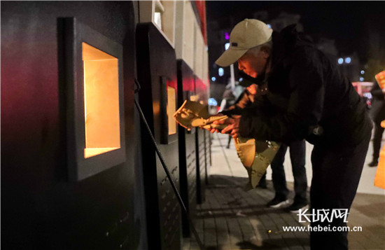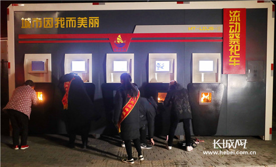 市民通過(guò)流動(dòng)祭祀車(chē)燒紙祭祀。曹建雄 攝