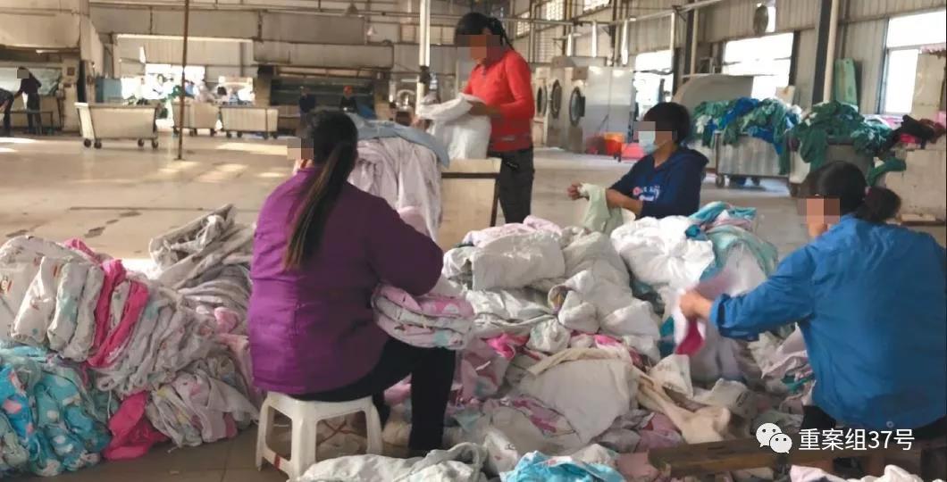 11月30日,南昌市豐源洗衣中心內(nèi),工人們正將堆放在地面的江西省兒童醫(yī)院嬰兒醫(yī)用布草進行折疊打包?,F(xiàn)場環(huán)境臟亂,嬰兒布草在洗滌烘干后被隨意堆放在地面。 新京報記者尹亞飛攝 兩洗滌廠承攬多家醫(yī)院布草洗滌 11月24日上午11時左右,一輛車身印有“南昌市洗滌行業(yè)協(xié)會”字樣的廂式貨車,停在了江西省兒童醫(yī)院住院部門口,車上下來的中年男子身穿白色大褂,戴著口罩,隨后打開車廂,將車廂內(nèi)的布草交給醫(yī)院里的三名工作人員運走。 這些布草被分送到住院部一樓和二樓的布草間,一名醫(yī)院工作人員稱,這些都是洗滌廠洗干凈送過來的手術(shù)服、患者床單、被套和嬰兒的醫(yī)用衣物。 隨后,工作人員又將堆放在各處的臟布草運到樓下,裝進貨車。記者注意到,一些嬰兒醫(yī)用布草、床單和醫(yī)生的手術(shù)服等混裝在一起,這些布草隨后被送到位于東湖區(qū)揚子洲鎮(zhèn)南洲村的南昌市揚子洲豐源洗衣中心。 該洗衣中心一名員工稱,除了承接江西省兒童醫(yī)院的布草清洗業(yè)務(wù),還承接解放軍第九四醫(yī)院、南昌大學(xué)第二附屬醫(yī)院等一共12家醫(yī)院的布草洗滌業(yè)務(wù)。 南昌洗滌行業(yè)一名知情人士稱,在南昌除了豐源洗衣中心,另一家名為順達洗滌服務(wù)中心的洗滌廠,也承接了多家醫(yī)院的布草洗滌業(yè)務(wù)。 11月27日上午,記者在江西省人民醫(yī)院住院部北樓,見到了來運送布草的順達洗滌服務(wù)中心的貨車。新京報記者現(xiàn)場觀察發(fā)現(xiàn),工作人員將臟布草放入車廂內(nèi)時,一些布草被扔在地板上,車廂內(nèi)也存在各科室布草混放的情況。 貨車裝載后,回到位于南昌市新建區(qū)長陵工業(yè)園內(nèi)的順達洗滌服務(wù)中心。據(jù)該中心一名員工稱,他們承接了“南大一附院”、“江西省人民醫(yī)院”、“南昌市第一醫(yī)院”、“江西省精神病醫(yī)院”等13家醫(yī)院的清洗業(yè)務(wù)。 據(jù)全國企業(yè)信息公示系統(tǒng)查詢,南昌市揚子洲豐源洗衣中心的法人代表是鄧小寶;南昌市順達洗滌服務(wù)中心的法人代表是裘偉光。 南昌市一名從事洗滌行業(yè)的知情人士向記者介紹,這兩家洗滌廠承包了大部分南昌市內(nèi)的三甲醫(yī)院布草洗滌業(yè)務(wù),“之所以能承包下來,還是老板的關(guān)系,”該知情人士向新京報記者透露,“像順達的老板就是以前南昌第一醫(yī)院退休外科主任,他有很多醫(yī)院的資源,要不然按照他公司那樣的清洗環(huán)境和流程,不可能承包得下來”。 南昌市第一醫(yī)院是南昌大學(xué)第三附屬醫(yī)院,屬于三甲醫(yī)院。新京報記者查詢得知,裘偉光曾是該醫(yī)院的主任醫(yī)師,腦外科主任,急診創(chuàng)傷中心主任。