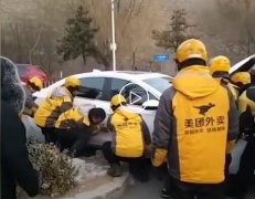 視頻截圖 澎湃新聞消息,12日,在河北秦皇島,一段附文點十份外賣喊十個小哥抬車的視頻熱傳。一當(dāng)事外賣哥告訴澎湃新聞,實為一女司機車陷花壇過路小哥幫抬。美團表示不會同一...