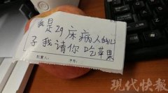 爸爸住院 9歲男孩寫下暖心紙條請(qǐng)醫(yī)生吃蘋果 日期:2017-09-06 10:26:18 點(diǎn)擊:193 好評(píng):0