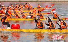 秦皇島大湯河龍舟賽現(xiàn)場 曹建雄 攝 中新網(wǎng)秦皇島6月15日電 (記者 肖光明 王天譯)端午臨近,15日上午,河北省秦皇島市第七屆龍舟賽在海港區(qū)開賽,參賽的45支隊伍在秦皇島大湯河競逐...